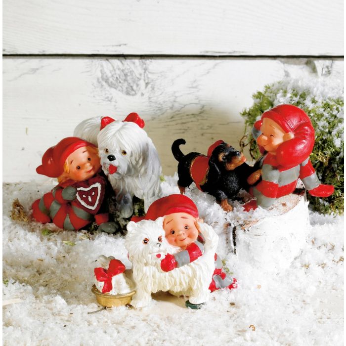 Baby elf with dog. It measures 6 cm. Available in 3 variants.