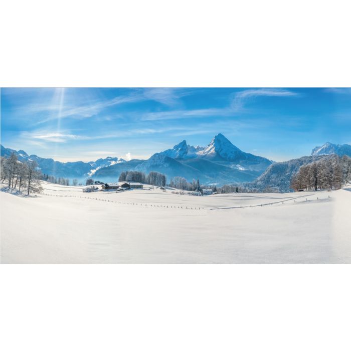 The backdrop with the Alps is made of fabric and is very easy to hang up. The background fits in any Christmas town or in a cozy Christmas landscape.
