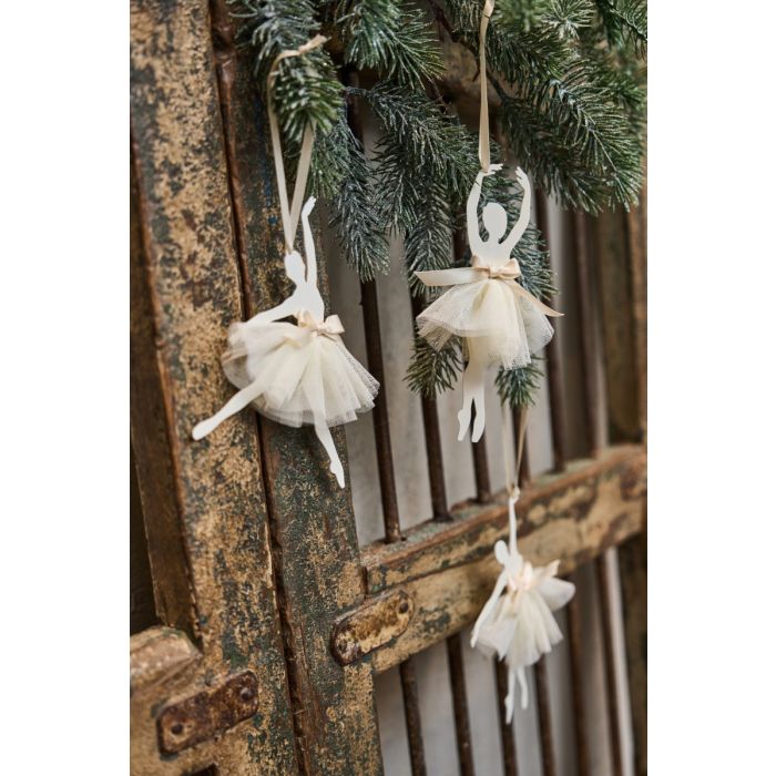 Elegant metal ballerina from Speedtsberg with a fine tulle skirt and decorative bow. The figure comes with a string for hanging and is available in three different ballet positions, each of which exudes lightness, grace and movement. The ballerina is a beautiful decoration for the home and can be hung in the window, on a branch or used as an ornament on the Christmas tree. The design matches the popular paper ballerinas from Speedtsberg.