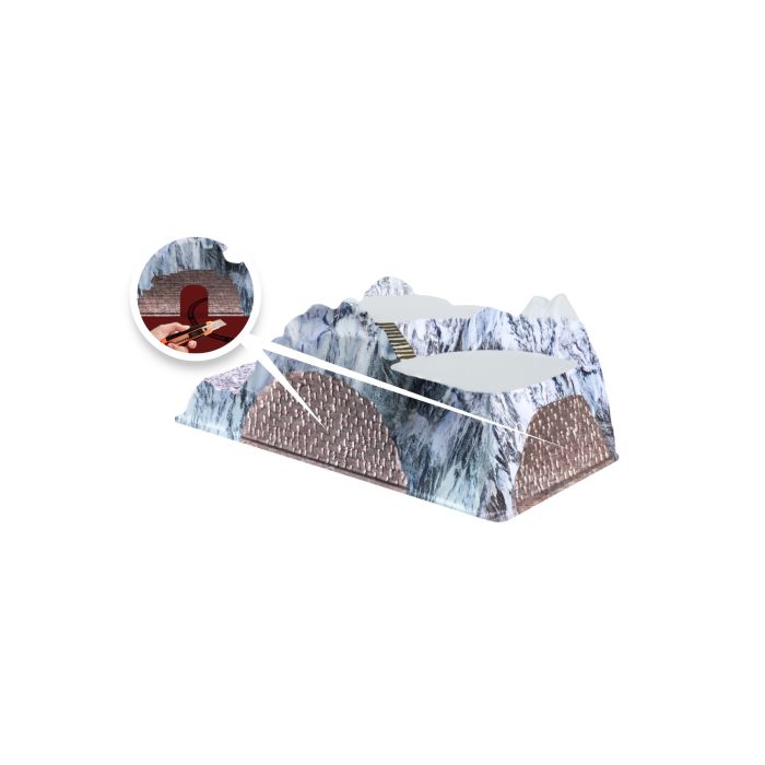Mountain foundation with the option of cutting a hole for one or more train tunnels of the desired size with a hobby knife. There is room for 3 houses on top of the foundation. The mountain foundation creates height in the Christmas landscape and makes it easy to hide the wires.