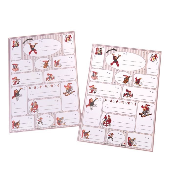 Adhesive white gift tags with gray lines to write on. The adhesive gift tags have a motif with the Bramming elves. There are 30 adhesive gift tags in total.