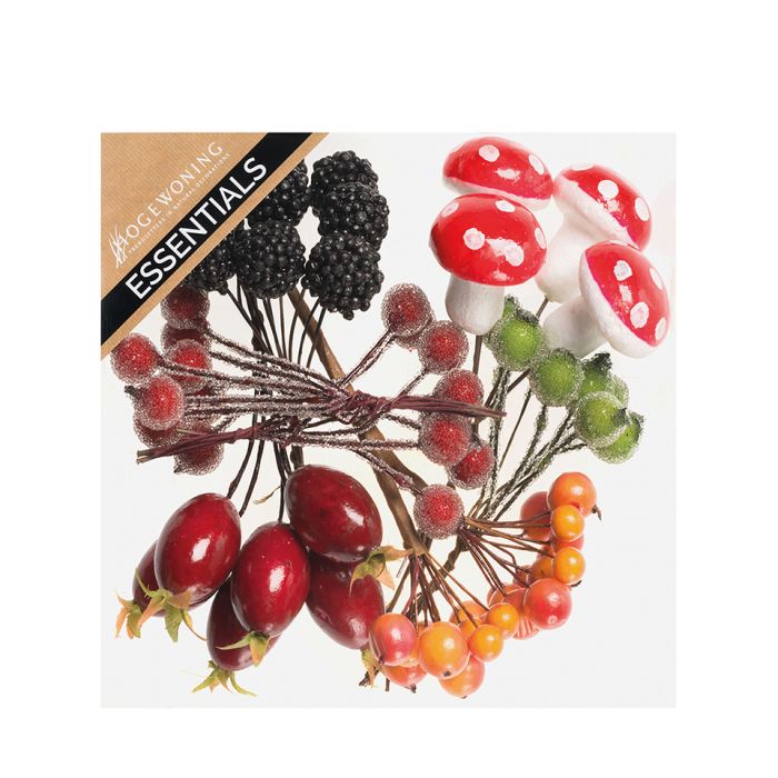 The autumnal craft decorations mix with wire includes red and white mushrooms and multicolored berries. There are 7 variants per bag with a small metal wire to stick into the wreath, clay, ground, etc. Use them to create your own autumn decoration.