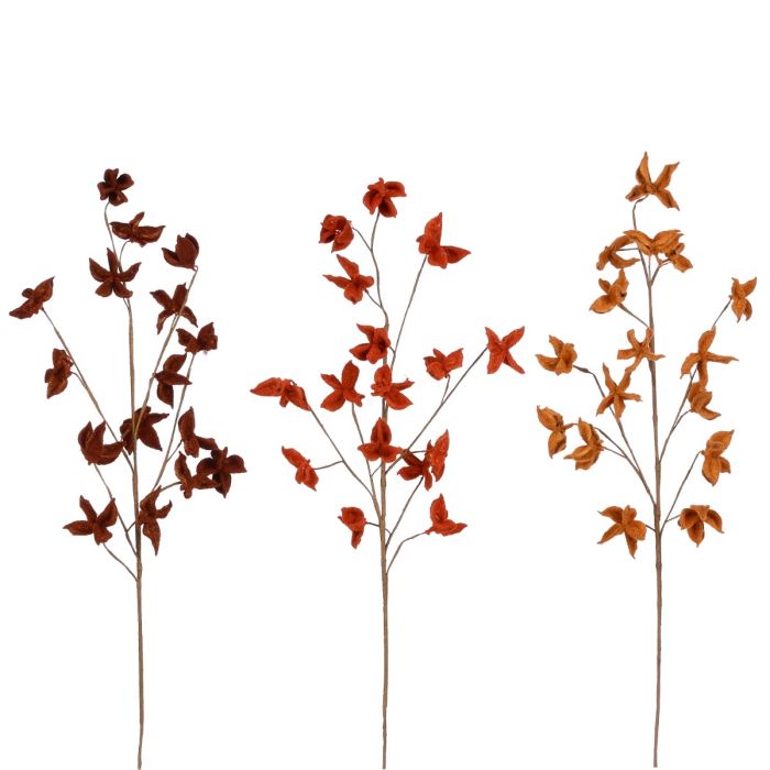 Autumn branch with coloured leaves. Whether you want to create autumnal arrangements or place the branch by itself in a vase, it can bring a touch of fall to your home. Available in 3 variants: brown, orange or red.