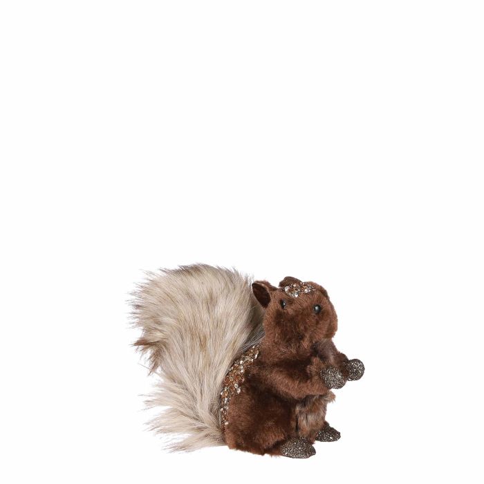 Brown squirrel. Furry plush toy representing a squirrel. The plush toy has a big shaggy tail and nice little spots on his back.