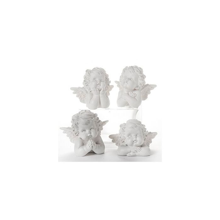 Angels with ribbons. The angels are made of white poly. It measures 12 cm in height. Available in 4 variants.