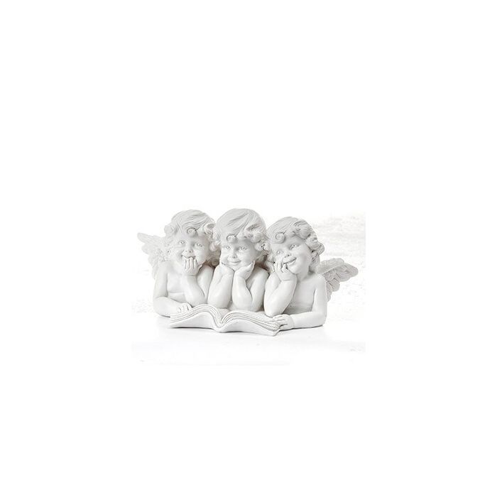 Angels with book. The three angels are made of white poly. It measures 10 cm in height and 22 cm in length.