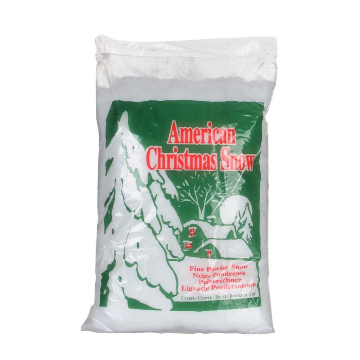 Luville fine Christmas snow. There are approx. 4 liters of sparkling Christmas snow that covers approx. 1m2. Our fine Christmas snow is made of shredded polystyrene that is 100% biodegradable in nature.