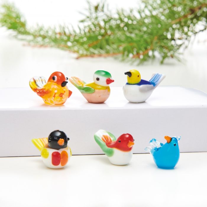 Glass figurines birds 6-pack