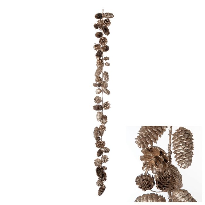 Garland with mixed white, red, gold and champagne colored cones. The cones have different sizes. The cone garland measures 110 cm in length. Perfect to decorate the windows and doorways with.