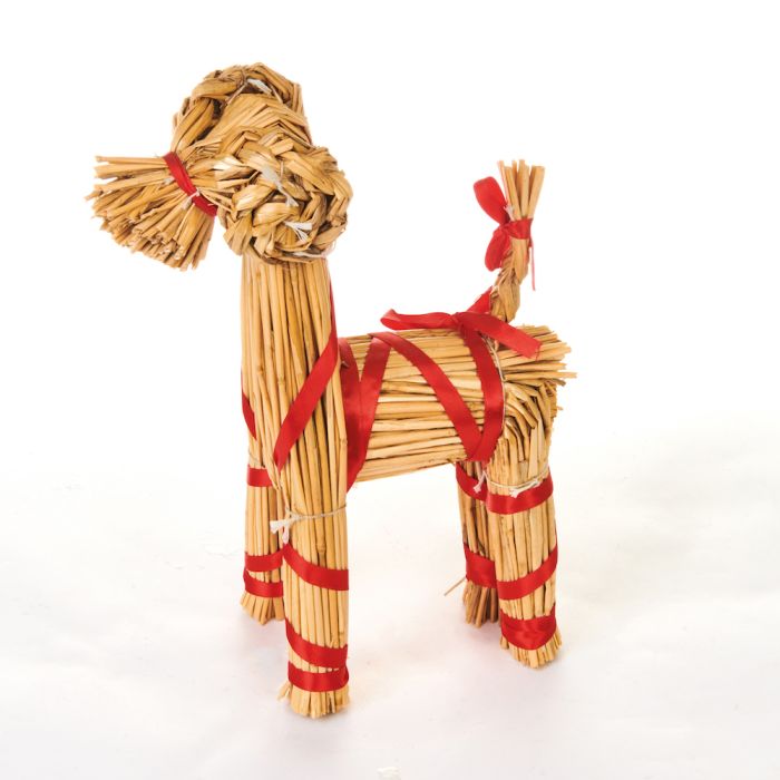 Straw buck with red silk ribbon. It measures 21 cm in height.