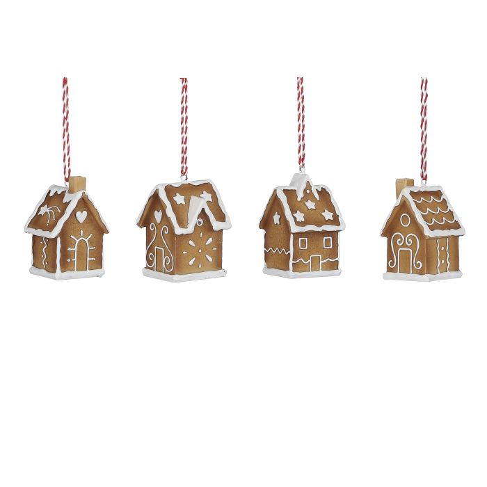 Create a cozy Christmas atmosphere with hanging gingerbread houses. The well-liked houses are made in brown shades and decorated with beautiful white "icing" in fine patterns that bring to mind classic Christmas cookies. The houses come with decorative red and white string, so they are easy to hang on the Christmas tree, in the window or on branches. The series consists of 4 different variants.