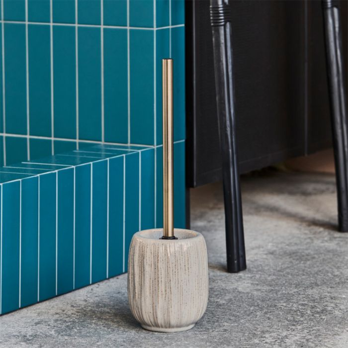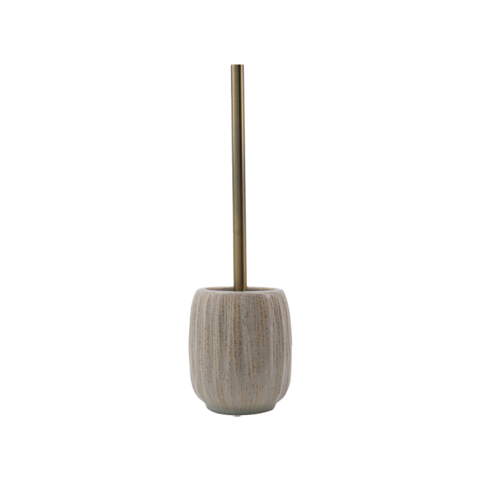 The toilet brush from House Doctor completes the series in off-white stoneware and gives the bathroom a calm and complete look. The holder is shaped in stoneware with vertical grooves and a speckled glaze, which creates a vibrant and handmade feel. The light color harmonizes beautifully with the brass-colored handle, which adds warmth and a discreet touch of elegance. The black brush head provides a practical and stylish contrast, and makes the brush suitable for daily use. With a height of 40 cm and a diameter of 12 cm, the toilet brush has a stable design that stands securely on the floor and at the same time appears decorative. The series also includes a toothbrush holder and a soap dispenser, so you can create a unified and calm look in the bathroom.