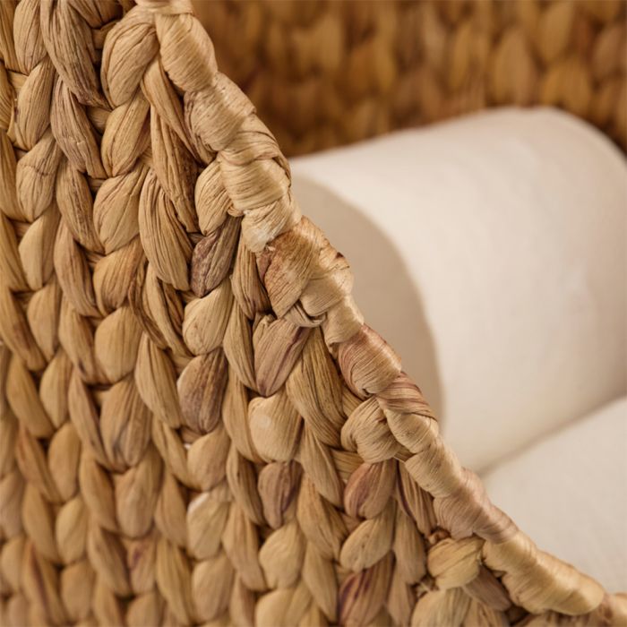 Made of braided water hyacinth, iron and eucalyptus wood.