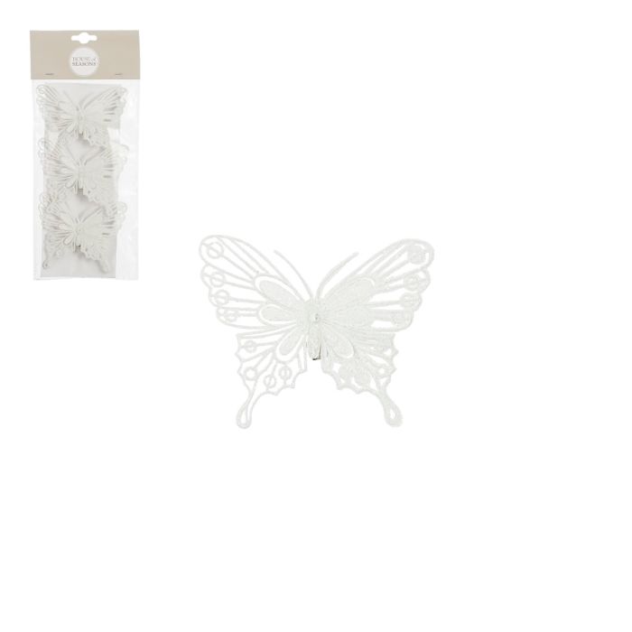 Decorative, white butterflies with a small clip so they can be easily attached to napkins, branches or in decorations.