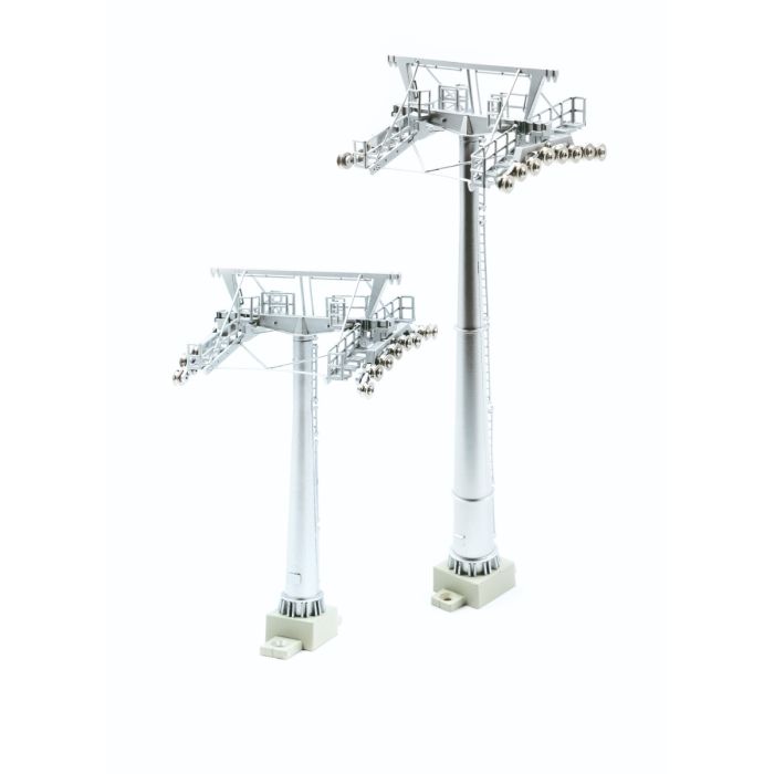 Jägersdorfer H0 Tower Set 12/16 in 1:87 scale from the Winter Sport Collection. This tower set is highly detailed and can be adjusted to multiple heights. It is designed to fit the Jägerndorfer H0 Ski Lift. The ski lift tower is made of a combination of plastic and metal and features an abundance of intricate details.