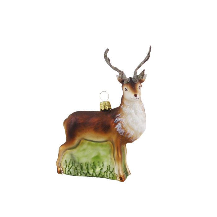 The deer ornament is made of real glass from the Austrian blown glass manufacturer Hanco. The deer measures 12.5 cm in height.