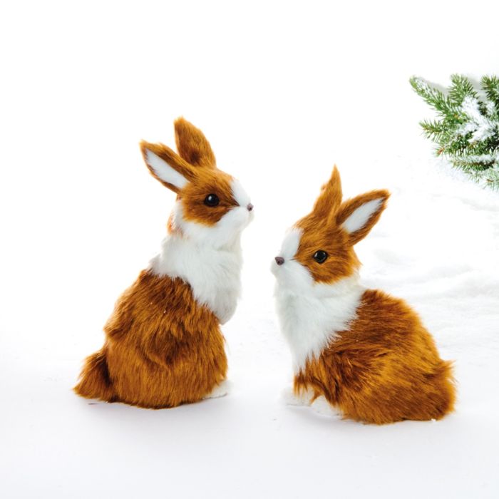 Cute and soft Easter rabbits in brown and white. The rabbits are made of faux fur and are available in a sitting or standing variant. Easter rabbits are also available in the colors light pink and white.
