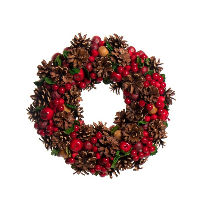 Wreath with apples, pine cones and berries 30 cm in diameter