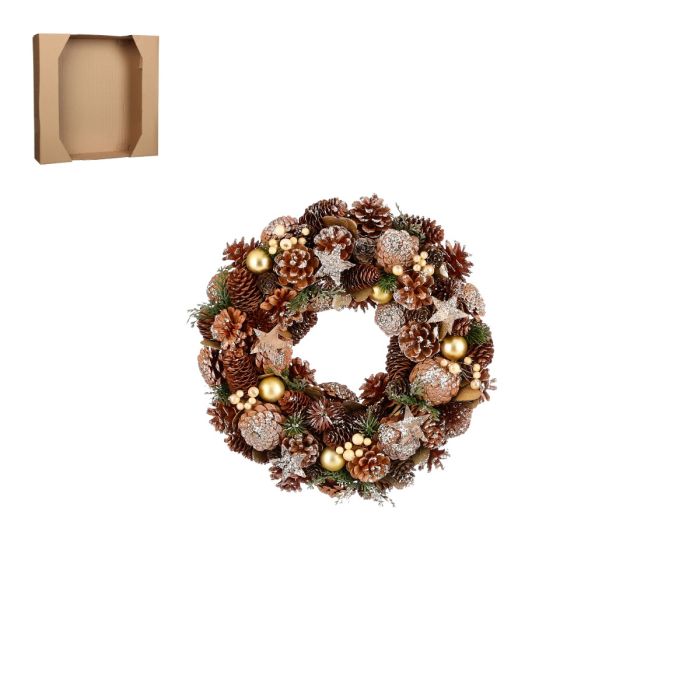 Wreath with cones and stars 34 cm is backordered and will ship as soon as it is back in stock.