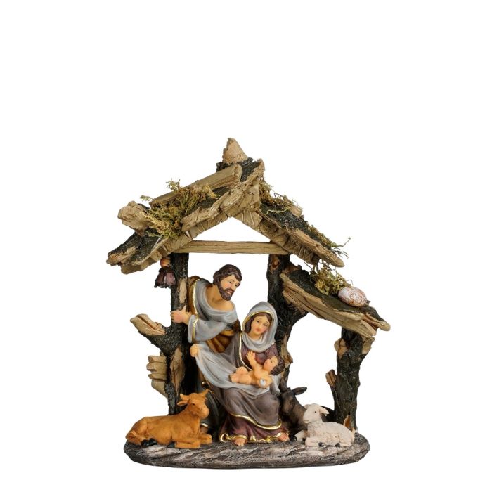 Nativity scene small stable with figures is backordered and will ship as soon as it is back in stock.