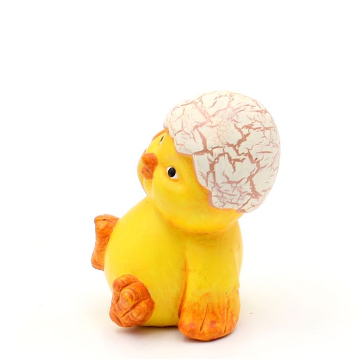 These little ceramic Easter chicks are shaped like newly hatched chicks, still wearing their eggshells on their heads and meeting the world for the first time. The figures' warm yellow color combined with the cracked eggshells gives a lively and narrative expression that fits naturally into the Easter traditions and spring mood.