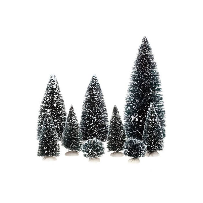 Luville fir trees with snow on them. There are 9 fir trees in the bag. Trees give a cozy atmosphere in the Christmas landscape.
