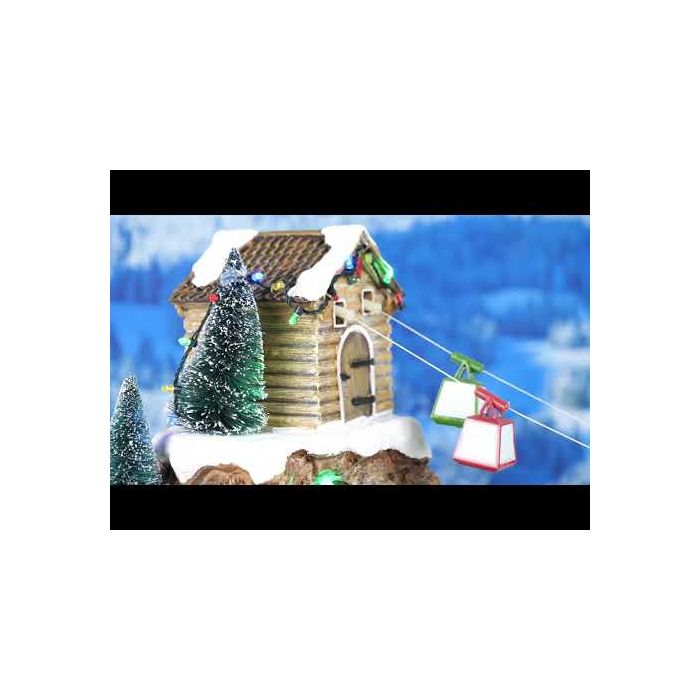 Luville Cable lift for skis belongs to the "Schneewald" series. It has multicolored led lights, music, animation and comes in a nice Luville box. The 4.5 V adapter is included. It measures: L: 48 cm x W: 26 cm x H: 28 cm.