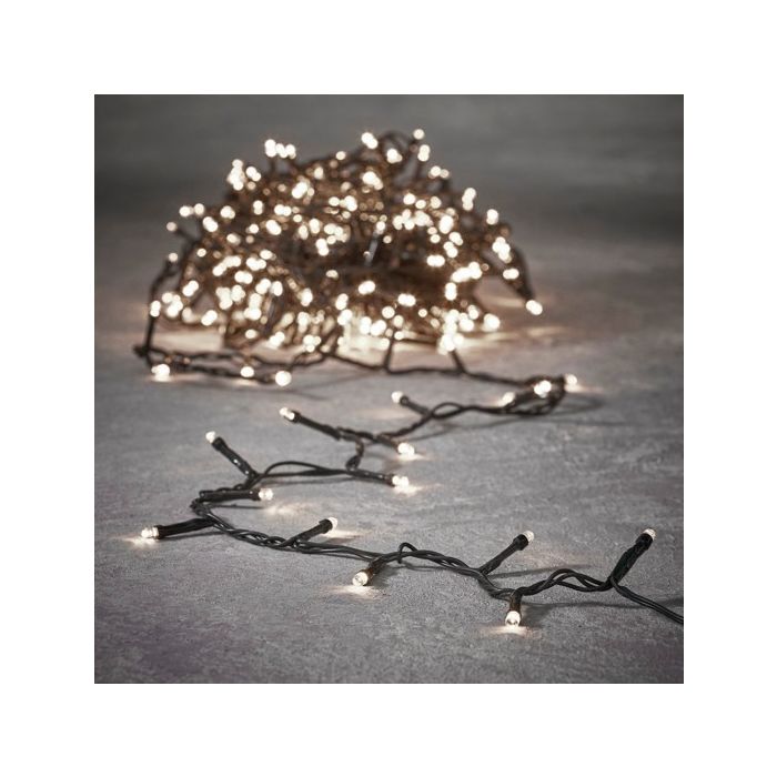 Lyskæde med 40 klassiske hvide led-pærer på en 3 meter lang ledning. Lyskæden er med batteriboks og timer.