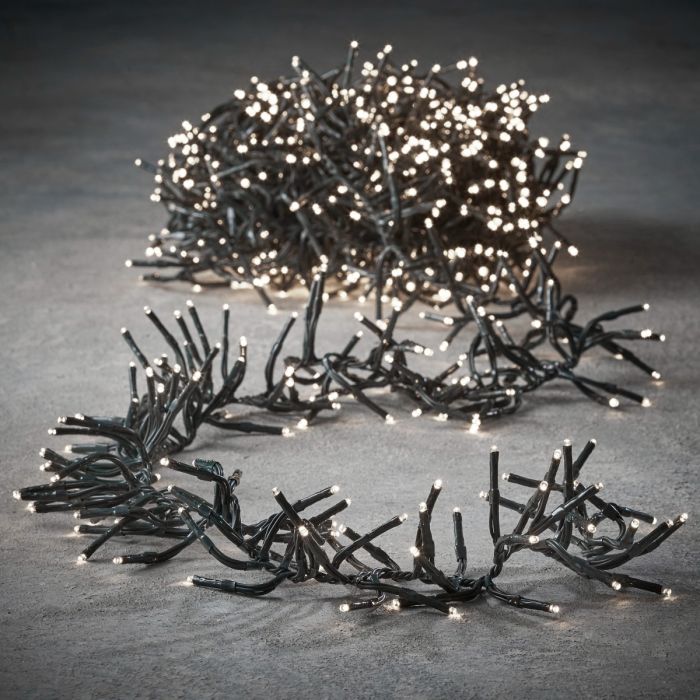 Beautiful and extra long string of lights with 2000 classic white LED cluster lights. This popular cluster light chain is designed to create maximum light intensity and a cozy atmosphere both indoors and outdoors. The tightly packed LED bulbs give a beautiful, vibrant look that makes the chain ideal for the Christmas tree, railing, hedge or as decorative lighting for festive occasions. The string of lights is equipped with 8 different light functions, so you can easily switch between constant light, flashing, waves or other effects depending on your mood and occasion. An impressive string of lights that can really create an eye-catcher.