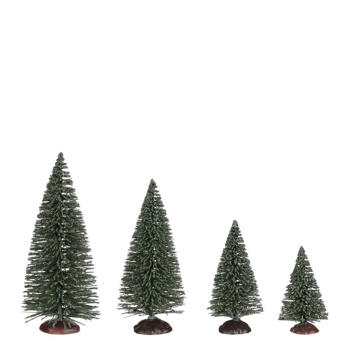 Dark green trees in four different sizes. Find more shrubs and trees without snow here.