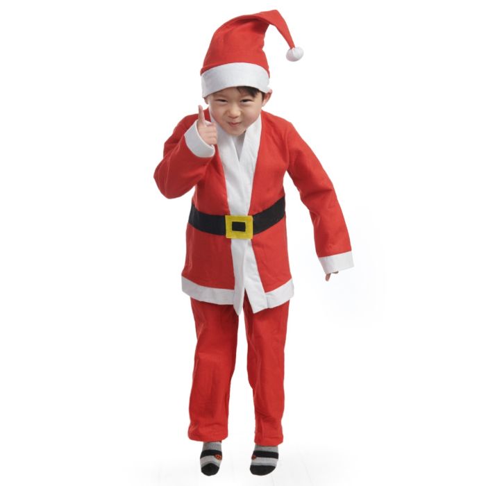 Santa costume with pants, jacket and Santa hat. Suitable for children aged 4 to 6 years.
