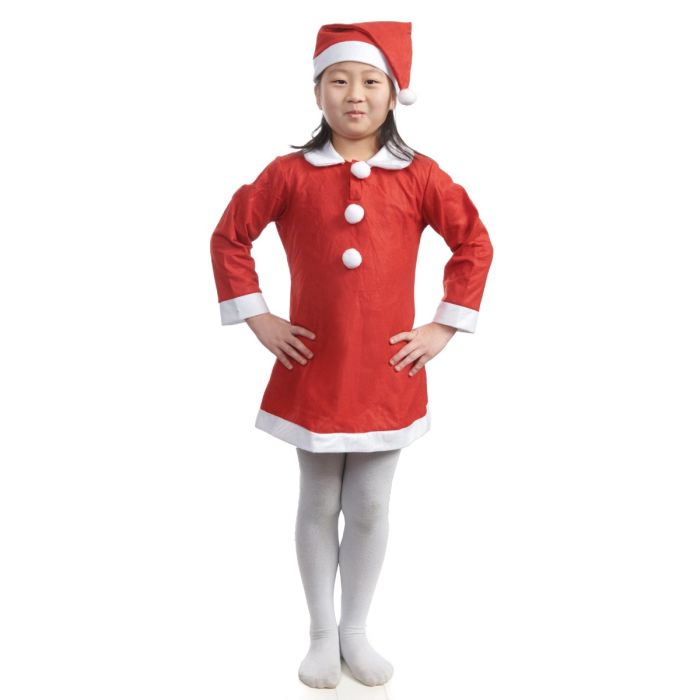 Santa costume with Santa dress and Santa hat. Suitable for children aged 6 to 8 years.
