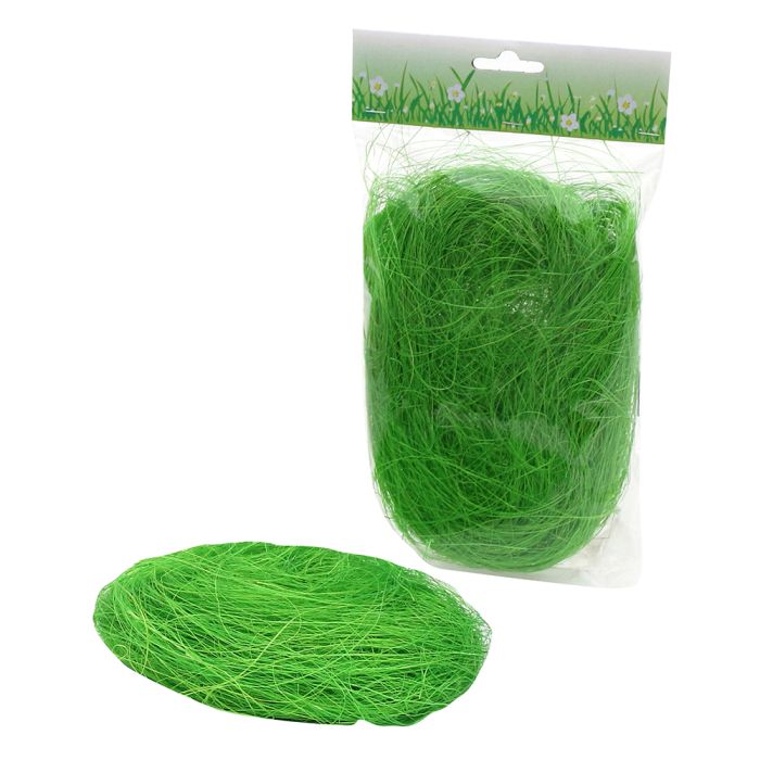 Plastic Easter grass in a nice green Easter colour. It can be used, for example, to fill baskets with eggs, small nests or as substrates for Easter chickens. 20 g per bag.