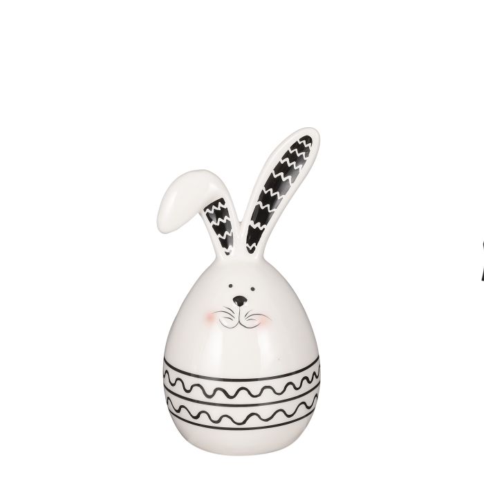 Easter bunny with egg-shaped body and long ears. The Easter bunny is in white and black with the exception of the pink cheeks. Cute and decorative on the Easter table.