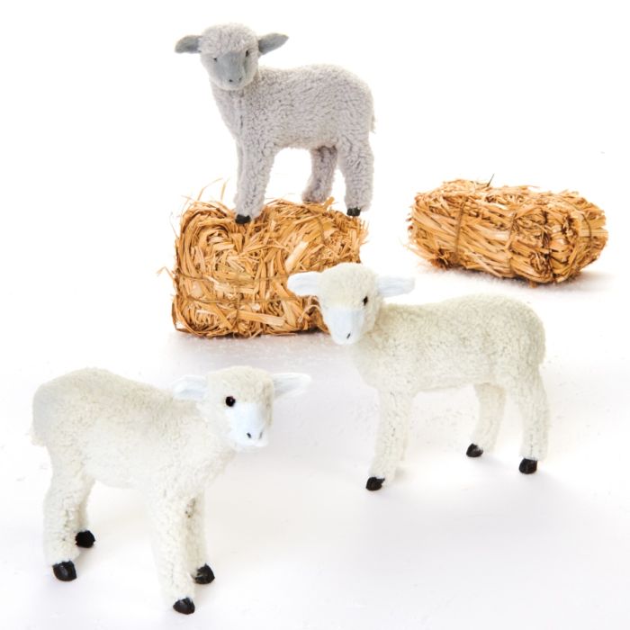 Cute, soft, lifelike Easter lambs in the colors gray or white. The Easter lambs have plush fur and black hooves. Perfect for Easter decorations or as Easter ornaments.