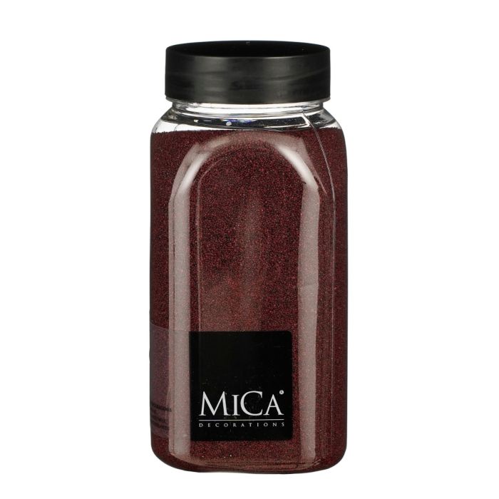 Sand i bordeauxrød farve. Dekorationssandet kan fx bruges som bunddekoration i vaser og glasbowler. I alt 650 ml sand.