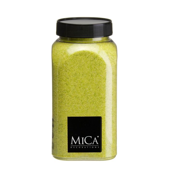 Sand i limegrøn farve. Dekorationssandet er til fx små stier i julelandskabet eller som bunddekoration i vaser, glasbowler og på lysfade.