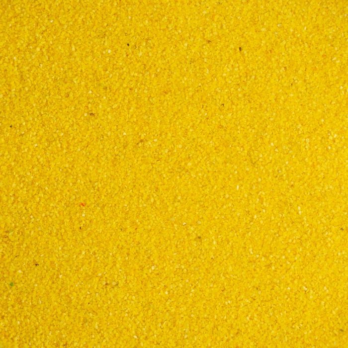 Sand i mørkegul farve. Dekorationssandet kan fx bruges som bunddekoration i vaser og glasbowler.