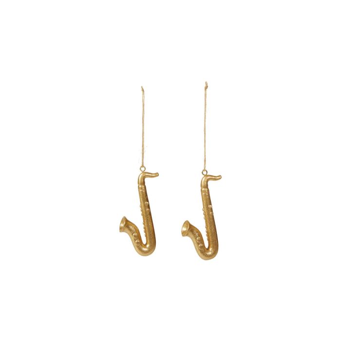 Gold-colored saxophone for decoration. The saxophone has a string for hanging, so it can be easily hung on, for example, the Christmas tree or branches and decorated.