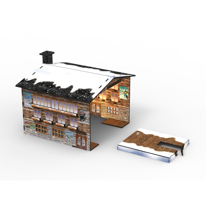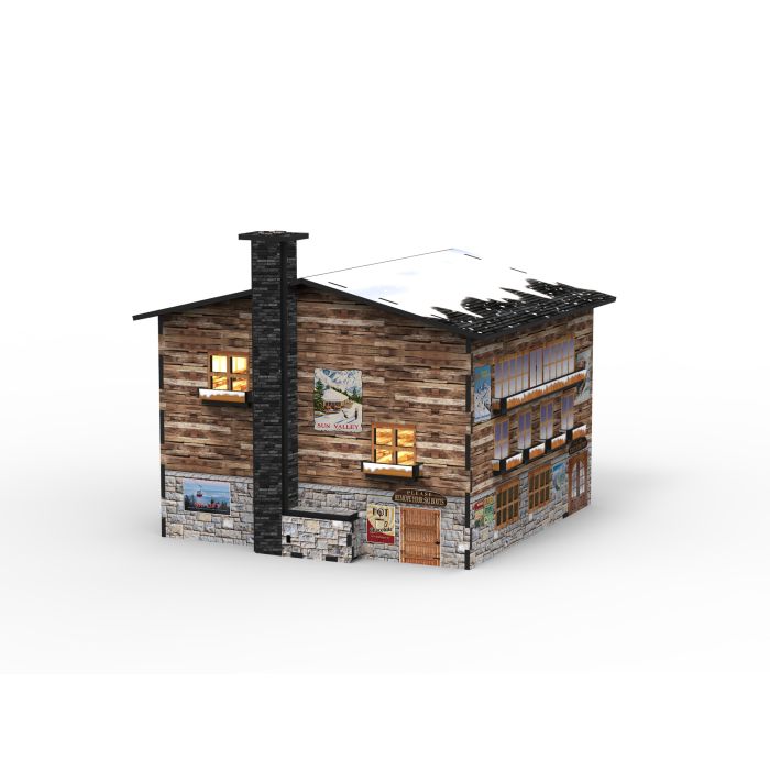 Ski lift station cover with LED lights. This ski lift station completes the ski lift with its cozy natural appearance and fine multi colored lights. The ski lift station cover is made of quality foam and fits the following ski lifts: JC83288, JC83289 and JC83290. It measures L: 37 cm x W: 38 cm x H: 31 cm. The ski lift station uses 2 AA batteries. The batteries are not included.