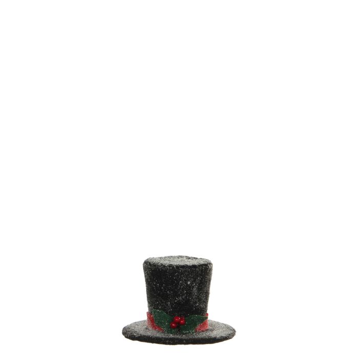 The snowman's tall, black hat. It measures 9 cm in height and 14 cm in diameter.