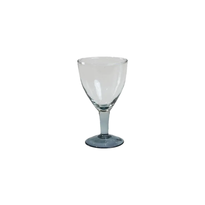 Mouth-blown and handmade wine glass with a blue base from Speedtsberg. The wine glass is a good size for both red and white wine. The colored base is a nice detail for the table setting. The wine glass is available in several colors and is part of the glass series, which also includes champagne and beer glasses.