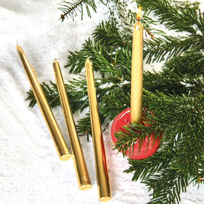 Gold colored advent candles. Beautiful, gold coloured advent candles with a length of 25 cm. The candles can also be used for the Christmas table.