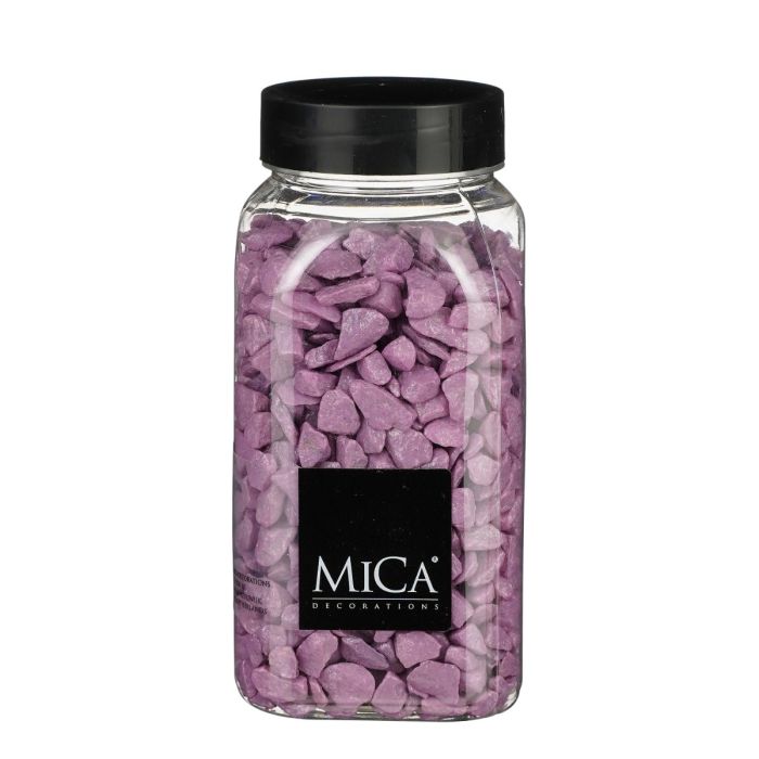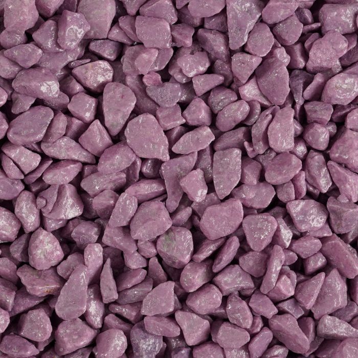 Lyslilla sten med fine nuancer. Pynter fx som dekoration i bunden af klare glasvaser eller glasbowler. De lyslilla dekorationssten fås også i samme farve som sand og som mindre granulatsten.