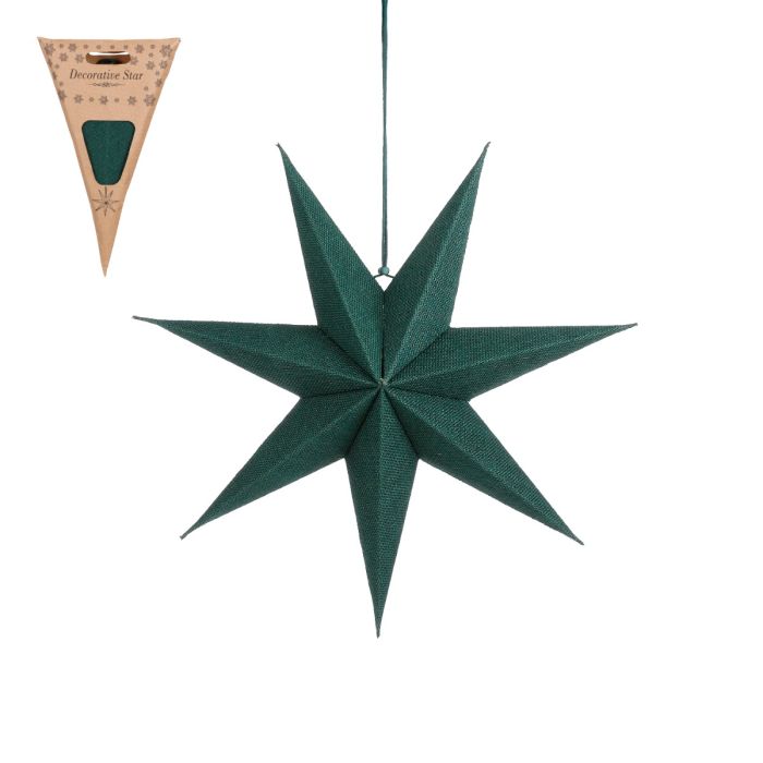 Finely woven green jute star with 7 tips and a hanging string. Use it to nicely decorate the room and hang it on windows or ceiling. Available in several colours and sizes.