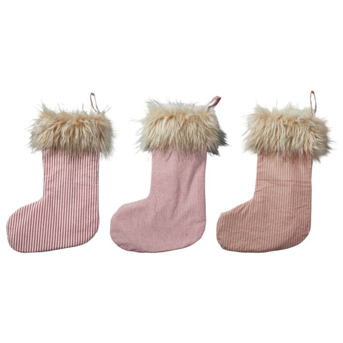 Striped Christmas stocking with faux fur trim - Thick stripes is backordered and will ship as soon as it is back in stock.