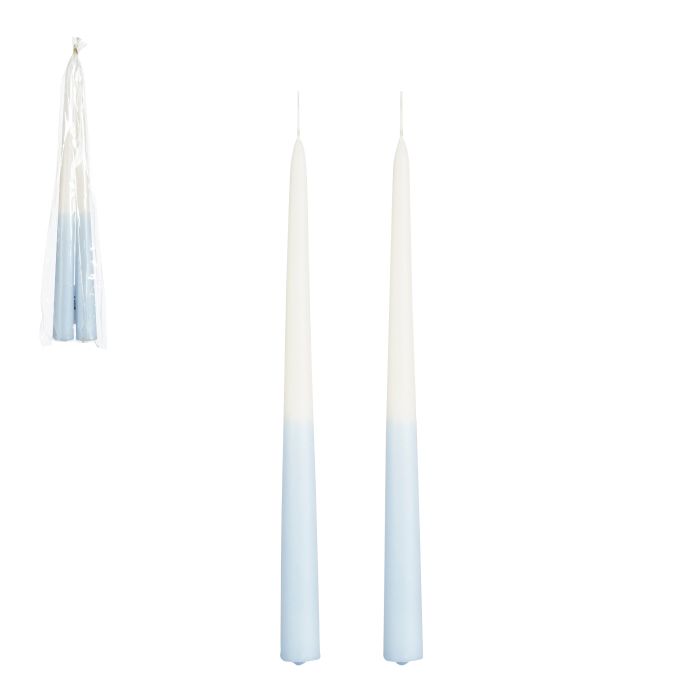 Beautiful two-toned candles in light blue and white from Mica Decorations. Candles add a cozy ambiance to everyday life and special occasions. These candles are suitable for events like baptisms.