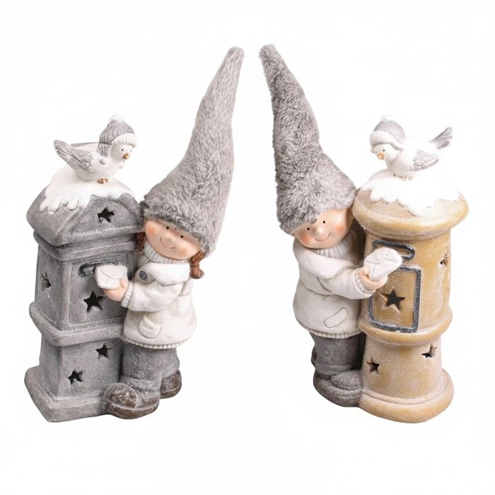 Winter children with mailboxes. The children dressed for winter are standing by the mailboxes. It measures 25cm x 16.5cm x 54cm. Made of polyresin. It can withstand light frost. Available in 2 variants: boy or girl.